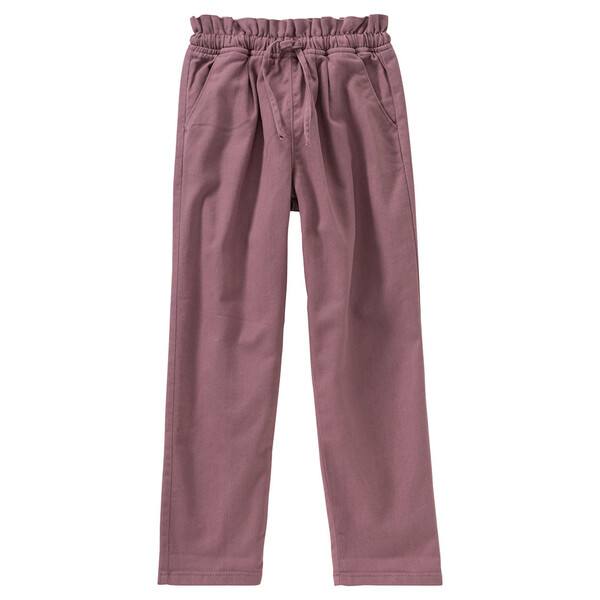 Bequemer Look! Gerade geschnittene Hose in Brombeer aus strukturierter Bio-Baumwolle mit Paperbag-Bund und Tunnelzug. Mit zwei Einschubtaschen vorne und einer Gesäßtasche. Lockere Passform. Der Organic Content Standard (OCS) ermöglicht es Unternehmen den genauen Anteil an ökologischem Material in einer Ware zu erfassen und durch die Produktionskette weiter zu verfolgen.