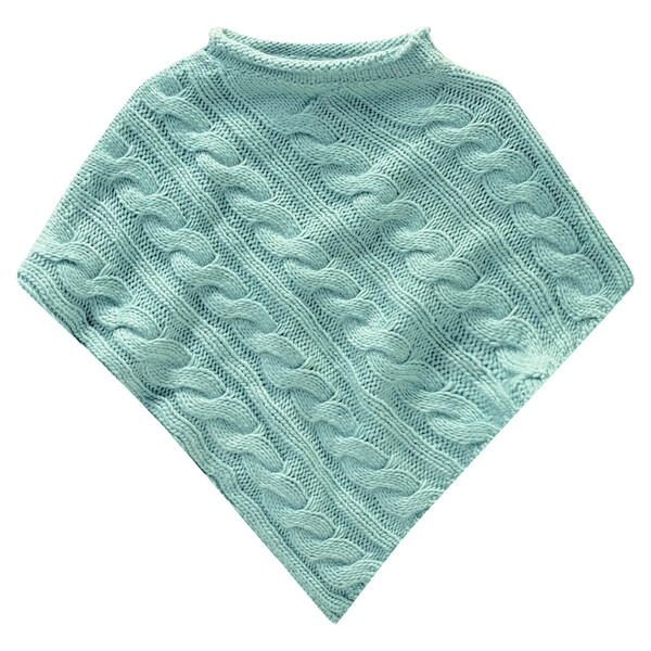 Tolle Maschen anziehen! Gestrickter Poncho in Mintgrün mit Zopfmuster und am Rundhalsausschnitt mit Rollbündchen.