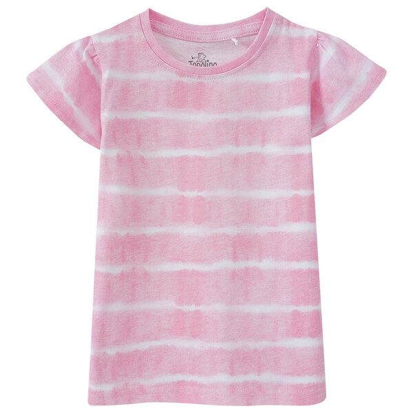 Neuer Trend! Rosa T-Shirt im Batik-Look mit weißen Streifen. Am Rundhalsausschnitt mit feinem Rippenbündchen. Cotton made in Africa setzt sich für einen ökonomisch, sozial und ökologisch nachhaltigeren Baumwollanbau in Subsahara-Afrika ein und trägt damit zu einer Verbesserung der Lebensbedingungen kleinbäuerlicher Familien bei.