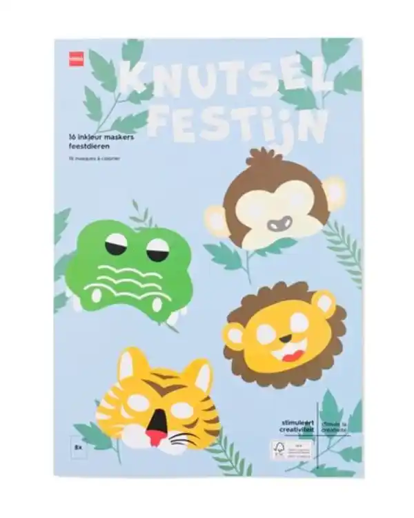 Masken zum Ausmalen Partytiere – 16 Stück