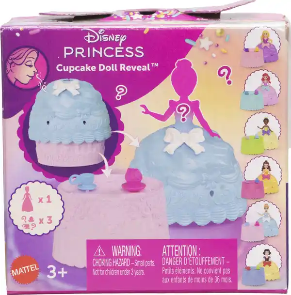 Wenn dieses Disney Princess Cupcake Puppe Reveal-Spielzeug ausgepackt wird, kann die Teeparty beginnen! Die süß duftenden Cupcakes enthalten tolle Überraschungen, darunter eine kleine Disney Princess-Puppe und zwei Zubehörteile für die Teeparty. Nach dem Auspacken können Kinder die Oberseite des Cupcakes als hübschen Rock für die Puppe und die Unterseite des Cupcakes als Tisch für die Party nutzen.