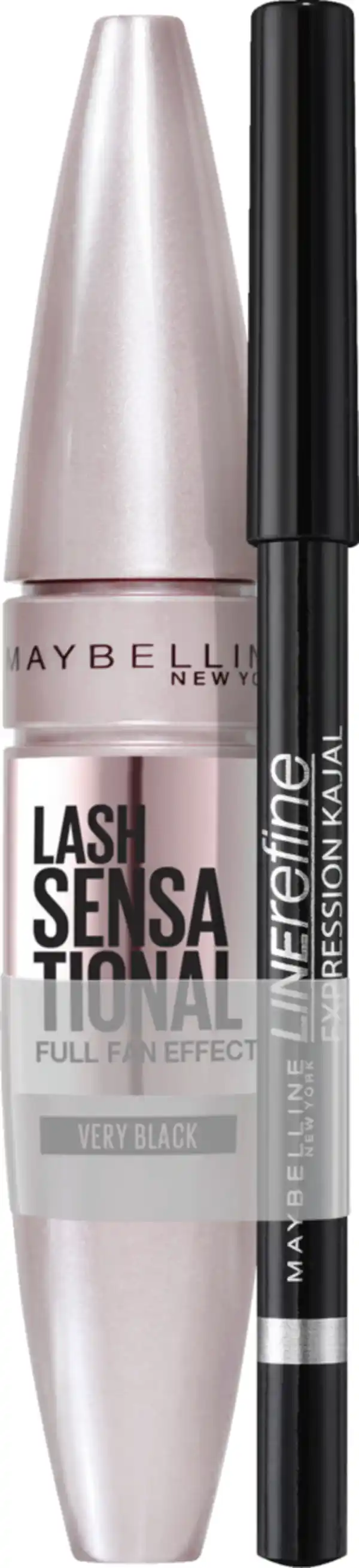 Maybelline New York Set: Lash Sensational Mascara mit Wimpern-Entfalter-Bürste für langen, vollen Wimpernfächer und geschmeidiger Kajalstift für präzisen, verblendbaren Lidstrich in intensiver Farbe.