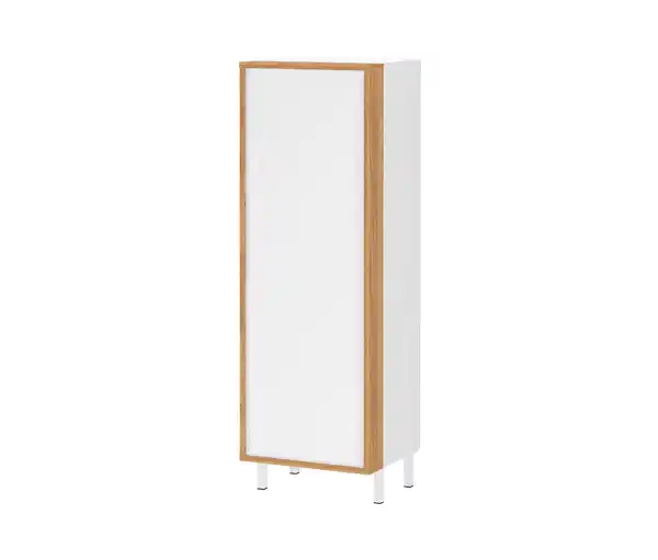Mediumschrank »Namsos 5001« Farbe: Weiß Rahmen Navarra-Eiche-Nachbildung Material: Spanplatte und mitteldichte Holzfaserplatte (MDF) Maße: B x H x T ca. 39 x 120 x 35 cm Inhalt: Inkl. Aufbauanleitung Gewicht: Ca. 23 kg Tragkraft: Unterboden max. 10 kg Einlegeböden je max. 7 kg Böden in der Tür je max. 3 kg Oberplatte max. 10 kg, punktuell max. 5 kg Gebrauchsanweisung: Montage unter Berücksichtigung der Angaben in der Aufbauanleitung Warnhinweise: Keine alkoholhaltigen Mittel, Schleifmittel oder statisch aufgeladene Staubreiniger verwenden. Mit einem trockenen Tuch wischen. Bitte die Anweisungen und Sicherheitshinweise der beiliegenden Aufbauanleitung berücksichtigen. Sonstige Hinweise: Artikel wird zerlegt geliefert Lieferung in 1 Packstück bis zur Verwendungsstelle Keine Inselbelieferung B x H x T Packstück ca. 124 x 12 x 41 cm, Gewicht ca. 24 kg Hersteller-Artikel-Nummer: 5001-513 Hersteller: Germania Werk Krome GmbH & Co. KG Schützenstraße 88, 33189 Schlangen info@mygermania.com Kratzfeste und widerstandsfähige Oberflächenbeschichtung3 variable Einlegeböden1 Tür – rechts/links anschlagbar Innenseite der Tür mit 4 AblagefächernGriffloses DesignMit Metallfüßen in WeißNachhaltige Verpackung ohne StyroporMADE IN GERMANY