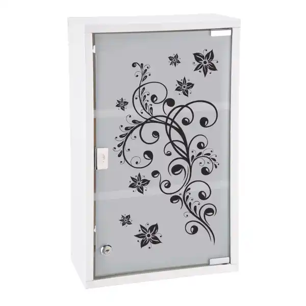 - Medizinschrank abschließbar mit bedruckter Glasscheibe