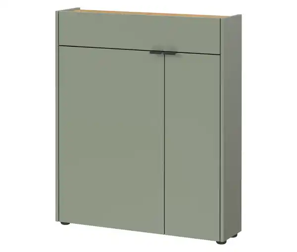 Mehrzweckschrank »Ameca«, taupegrün Farbe: Taupegrün/Navarra-Eiche-Nachbildung Material: Spanplatte, Metall Maße: B x H x T ca. 83 x 99 x 22 cm Inhalt: Inkl. Montageanleitung Gewicht: Ca. 27,8 kg Tragkraft: Oberboden, Schublade und Ablageböden je max. 10 kg Unterboden max. 20 kg Gebrauchsanweisung: Keine alkoholhaltigen Mittel, Schleifmittel oder statisch aufgeladene Staubreiniger verwenden Mit einem trockenen Tuch wischen Montage unter Berücksichtigung der Angaben in der Aufbauanleitung Warnhinweise: Bitte die Anweisungen und Sicherheitshinweise der beiliegenden Aufbauanleitung berücksichtigen Sonstige Hinweise: Artikel wird zerlegt geliefert Lieferung in 1 Packstück frei Verwendungsstelle Keine Inselbelieferung B x H x T Packstück ca. 133,5 x 11,5 x 56,5 cm, Gewicht ca. 28 kg Kratzfeste und widerstandsfähige OberflächenbeschichtungStoß- und schlagfeste KantenTüren schließen durch integrierten Dämpfer langsam, sanft und geräuschlosMit Kantengriffen aus Metall Geringe Tiefe - ideal für schmale FlureVerstellbare Einlegeböden zur individuellen GestaltungOhne Styropor verpacktEin Element unserer »Ameca«-Möbel-SerieHersteller: GermaniaMADE IN GERMANY