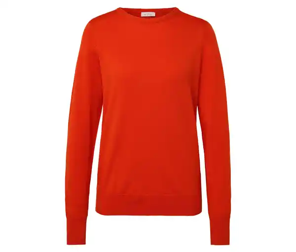 Merino-Feinstrickpullover, orange Farbe: Orange Material: 100% Wolle (Merinowolle) Maße: Gesamtlänge ca. 66 cm (Gr. M 40/42) Passform: Regular Fit Weiche Qualität aus reiner MerinowolleElastische Rippbündchen an Ausschnitt, Ärmelabschluss und SaumRundhalsausschnittDieser Pullover beinhaltet 100% RWS-zertifizierte Wolle, zertifiziert durch CU 809415Dieser Pullover achtet das Tierwohl von Schafen.