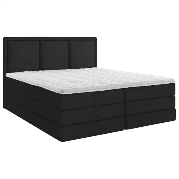 Mid.you Boxspringbett, Schwarz, Textil, H2 + H3, 7-Zonen, Höhe ca. 18 cm, 200x200 cm, Bettkasten, gepolstertes Kopfteil, Topper durchgehend, Wendematratze mit unterschiedlichen Härtegraden, in vers