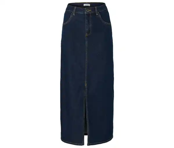 Midi-Jeansrock Farbe: Dark blue denim Material: 79% Baumwolle, 20% Polyester, 1% Elasthan (LYCRA®) Maße: Gesamtlänge ca. 91 cm Passform: Regular Fit Elastische Qualität mit BaumwolleVorderseite mit SchlitzBund mit Gürtelschlaufen, Reißverschluss und KnopfEingrifftaschen auf der Vorderseite2 aufgesetzte GesäßtaschenHohe Taille