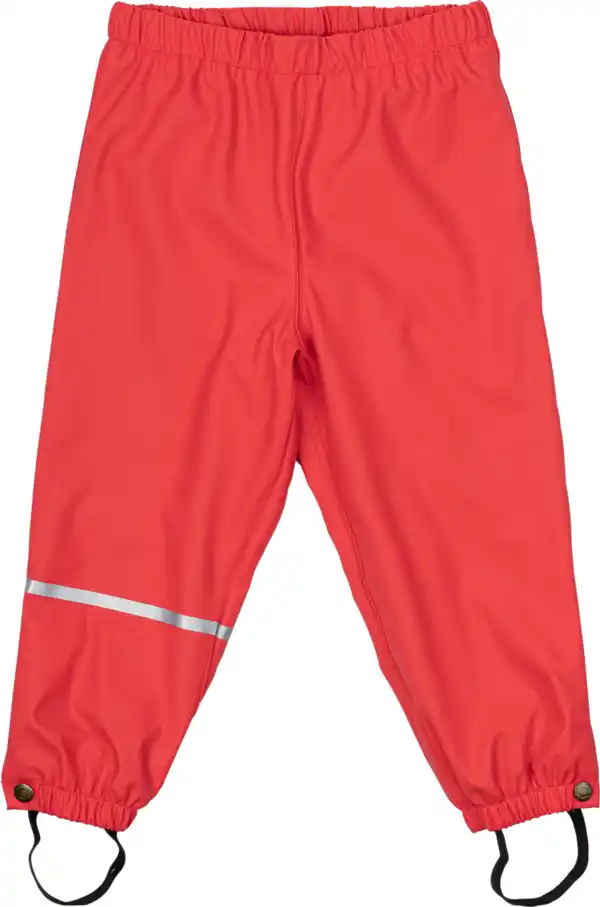 - Regenhose für Kinder in Größe 86/92 in rot mit reflektierenden Details, aus recyceltem Material und mit Fleece gefüttert.
