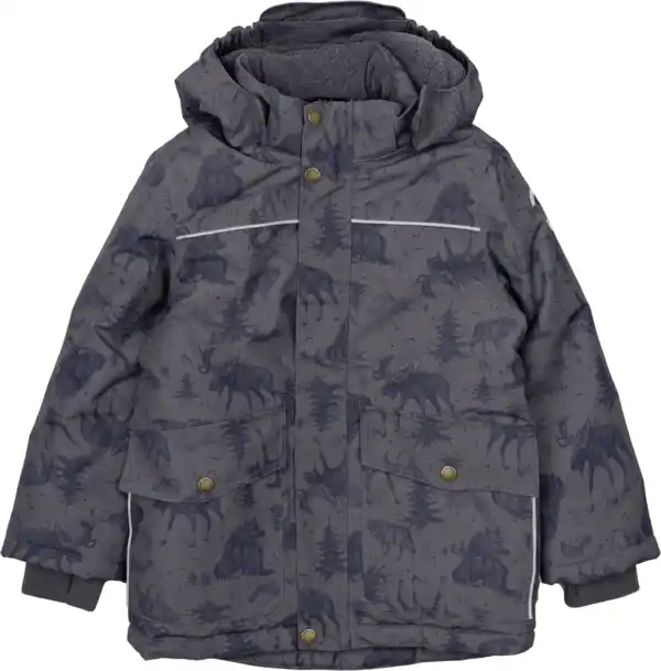 Mikk-Line Schneejacke mit Fleece-Futter & Wald-Muster, grau, Gr. 98/104, 1 St