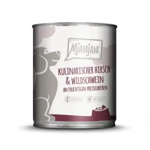 MjAMjAM Nassfutter Hund Adult kulinarischer Hirsch & Wildschwein an fruchtigen Preiselbeeren 6x800 g