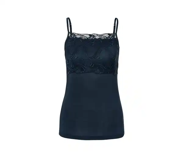 Modal-Hemdchen, dunkelblau Farbe: Dunkelblau Material: 95% Modal, 5% Elasthan Spitze 88% Polyamid, 12% Elasthan Brustbereich mit zarter, weicher SpitzeAngenehm weiche Modal-Stretch-QualitätLängenverstellbare TrägerMit hochwertigem Markenelasthan für Langlebigkeit und hohe WaschbeständigkeitDieses Hemdchen beinhaltet Fasern aus nachhaltigem Holz.