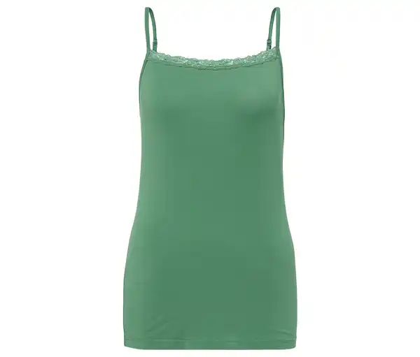 Modal-Hemdchen, grün Farbe: Grün Material: 95% Modal, 5% Elasthan Spitze 85% Polyamid, 15% Elasthan Zarte Spitze am AusschnittAngenehm weiche Modal-Stretch-QualitätLängenverstellbare TrägerMit hochwertigem Markenelasthan für Langlebigkeit und hohe WaschbeständigkeitDieses Hemdchen beinhaltet Fasern aus nachhaltigem Holz.
