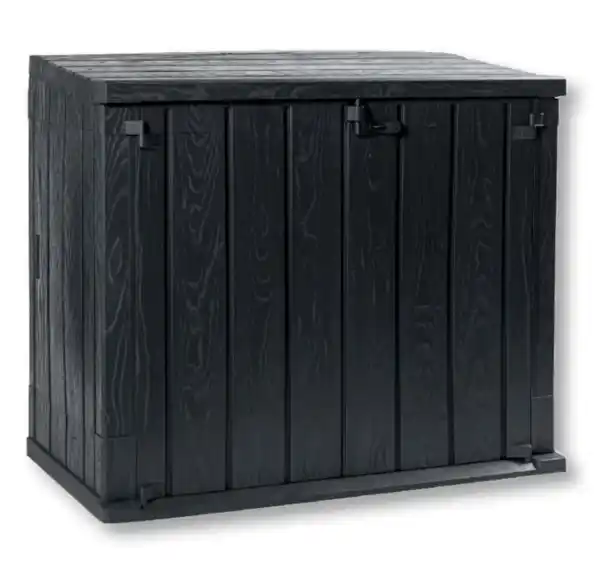 anthrazit, Polypropylen in Holzoptik, witterungs- und UV-beständig, inkl. Bodenplatte, 129,5 x 111 x 74,5 cm (B x H x T), zugleich auch der niedrigste Preis der letzten 30 Tage