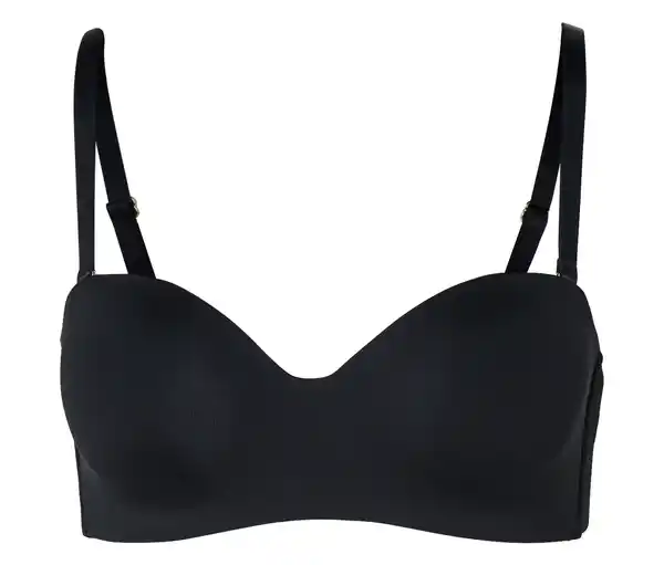 Multistyle-BH, schwarz Farbe: Schwarz Material: 88% Polyamid, 12% Elasthan Futter 100% Elasthan Cupfutter 100% Polyester 4 verschiedene Tragevarianten – passend für jedes Outfit Softe Microtouch-QualitätLeicht wattierte CupsTragevarianten: trägerlos, normale Trägerstellung, Neckholder, hinten gekreuzte TrägerInkl. längenverstellbarer TrägerAntirutsch-Effekt durch innovatives Futter in den FlügelnOhne Silikon – besonders hautfreundlichMit dekorativem Metallplättchen und SatinschleifeMit hochwertigem Markenelasthan für Langlebigkeit und hohe Waschbeständigkeit3-fach verstellbarer SoftSeal®-Häkchenverschluss