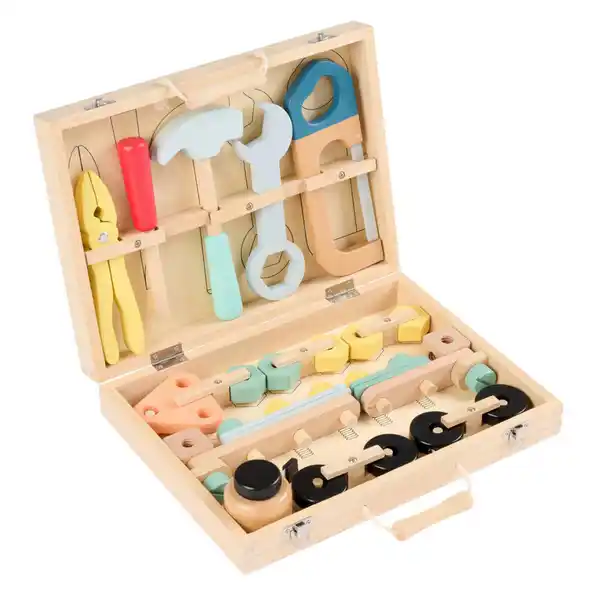 My Baby Lou Kinder-Werkzeugkoffer, Mehrfarbig, Holz, Metall, Textil, Holzwerkstoff, 32-teilig, Buche, Kiefer, Kautschukholz, massiv, Sperrholz, 23.5x5.9x31.5 cm, EN 71, Spielzeug, Kinderspielzeug, Ki