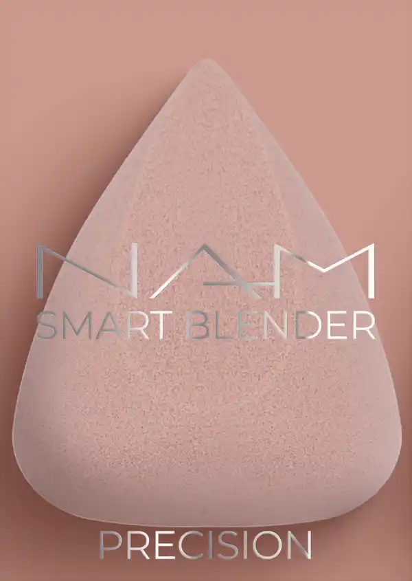 Der SMART BLENDER PRECISION von NAM besteht aus einem veganen Material, das sanft zur Haut ist und die optimale Menge an Wasser für einen natürlichen, gleichmäßigen und perfekt verblendeten Effekt aufnimmt - mit subtilen Tonübergängen, einem filmischen Unschärfeeffekt, frisch wirkendem Rouge und perfekt geführter Konturierung.