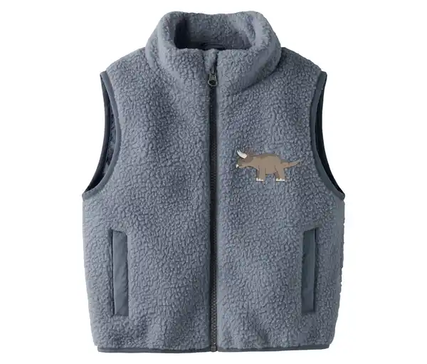 NAME IT Kinder-Teddyweste Farbe: Flint Stone Material: 100% Polyester Kuschelweiche Weste aus TeddyfleeceMit Dino-Applikation auf Vorder- und RückseiteIdeal für den Layering-LookReißverschluss mit Kinnschutz2 Eingrifftaschen