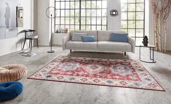 Ein extravagantes Accessoire aus der Kollektion ASMAR von Nouristan. Der maschinell hergestellte Teppich „Gratia“ wird zum echten Hingucker in jedem Wohnbereich! Die hochwertige Verarbeitung und die sorgfältig ausgewählten Materialien überzeugen auf ganzer Linie. Das klassische, dennoch modern interpretierte Vintage-Design wird von kräftigen Farben unterstrichen und eine farblich angepasste Kettelung in der angesagten Handmade-Optik rundet das Gesamtbild perfekt ab. Das klassische und sehr detailreiche Design lässt sich zu unterschiedlichen Einrichtungen vielseitig kombinieren und selbst in einer modern eingerichteten Wohnung findet dieser Teppich seinen Platz. Dank dem verarbeiteten Polyester ist dieser Teppich besonders strapazierfähig und pflegeleicht, die meisten Flecken lassen sich leicht mit einem handelsüblichen Teppichschaum entfernen. Dazu sorgt das verarbeitete Material auch für eine samtige und weiche Oberfläche. Auch in Räumen mit einer Fußbodenheizung kann der Teppich problemlos ausgelegt werden. Bitte beachten Sie, dass die Farben auf Ihrem Monitor von den Original-Farbtönen abweichen können.