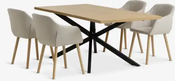 NORTOFT L200 Tisch Eiche w. + 4 ADSLEV Stühle beige Stoff