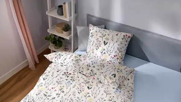 Reine Baumwolle; mit Reißverschluss; Kopfkissenbezug, B x L: je ca. 80 x 80 cm, Bettbezug, B x L: je ca. 135 x 200 cm; verschiedene Dessinvarianten