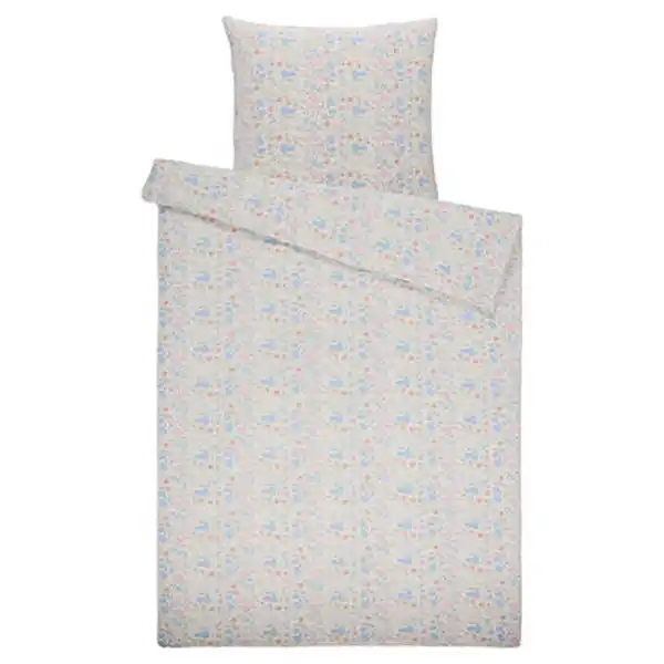 NOVITESSE Seersucker-Bettwäsche, Weiße Blume, 135 x 200 + 80 x 80 cm