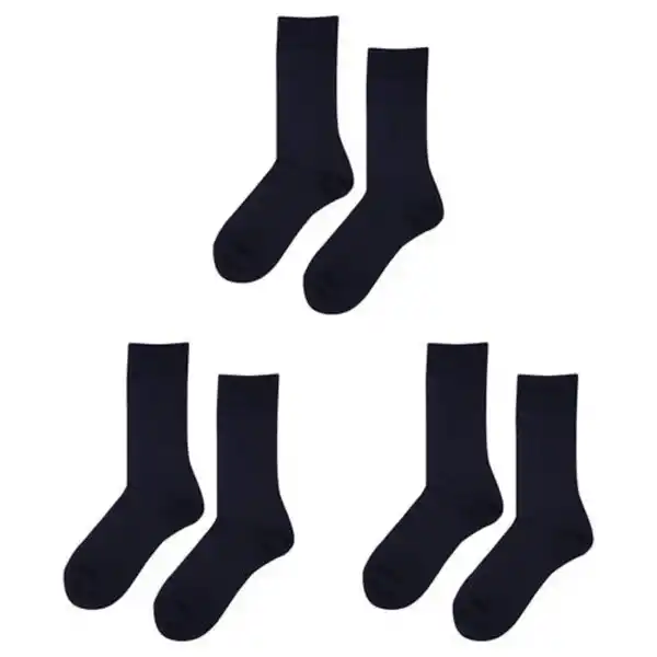 \n- Je 3er Pack - Material: 63 % konventionelle Baumwolle, 37 % Polyamid - Größen: 35/38 - 43/46 - Farbe: maritime, dunkelgrau melange und schwarz - Sonstige: Oeko-tex