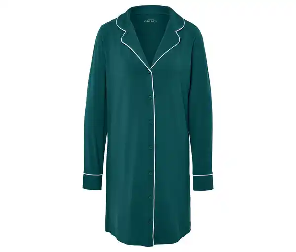Nachthemd Farbe: Petrol Material: 95% Modal, 5% Elasthan Maße: Gesamtlänge ca. 92 cm (Gr. M 40/42) Besonders weiche Modal-Strechqualität Mit Kragen und durchgehender KnopfleisteLeicht abgerundeter Saum mit kleinen SeitenschlitzenMit hochwertigem Markenelasthan für Langlebigkeit und hohe WaschbeständigkeitDieses Nachthemd beinhaltet Fasern aus nachhaltigem Holz.