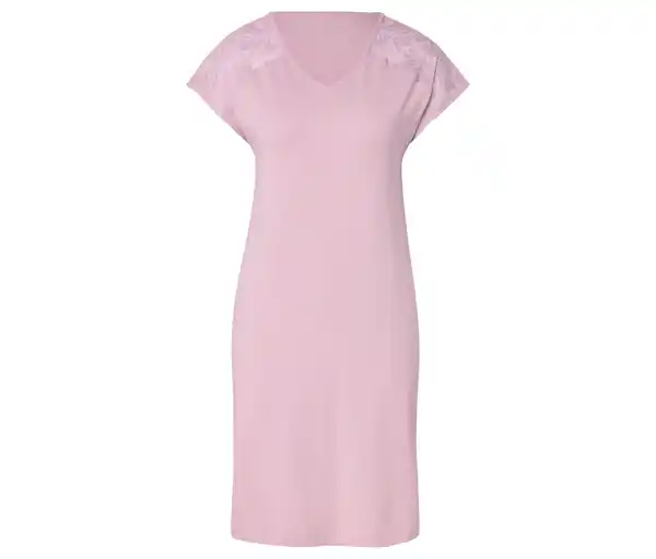Nachthemd Farbe: Rosa Material: 48% Baumwolle, 47% Modal, 5% Elasthan Maße: Gesamtlänge ca. 95 cm (Gr. M 40/42) Passform: Regular Fit Weiches Material aus Baumwolle und ModalMit V-Ausschnitt und weichem Spitzenbesatz an den SchulternLeichte A-FormMit hochwertigem Markenelasthan für Langlebigkeit und hohe Waschbeständigkeit