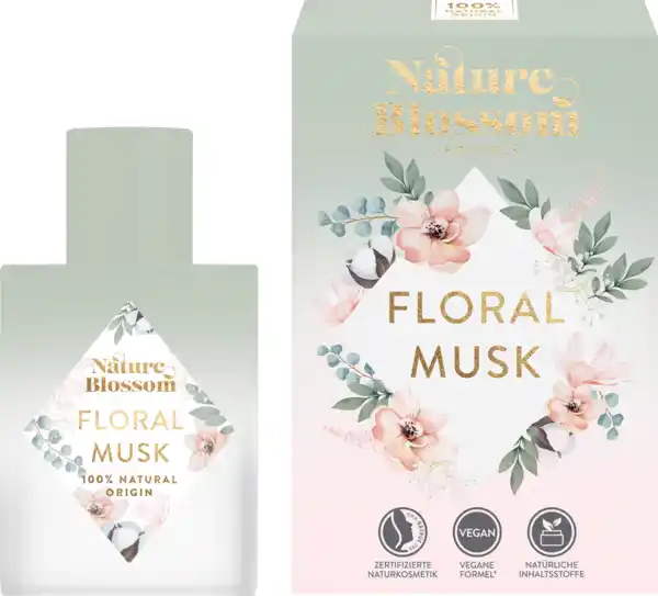 Das Floral Musk Eau de Parfum von Nature Blossom verkörpert die betörende Leichtigkeit blumiger Eleganz und sinnlicher Frische. Diese exquisite Duftkomposition vereint weiße Blüten mit fruchtigen Noten von Mandarine und Bergamotte, die die Sinne erwecken und ein Gefühl von sonniger Geborgenheit vermitteln. Die wärmende Vanille und samtige Moschusnoten runden das Erlebnis ab. Mit einem floralen Bouquet aus Tuberose und Ylang-Ylang erinnert der Duft an frisch gewaschene Wäsche. Dieser Artikel ist für Express-Bestellungen verfügbar oder in unseren dm-Märkten erhältlich.