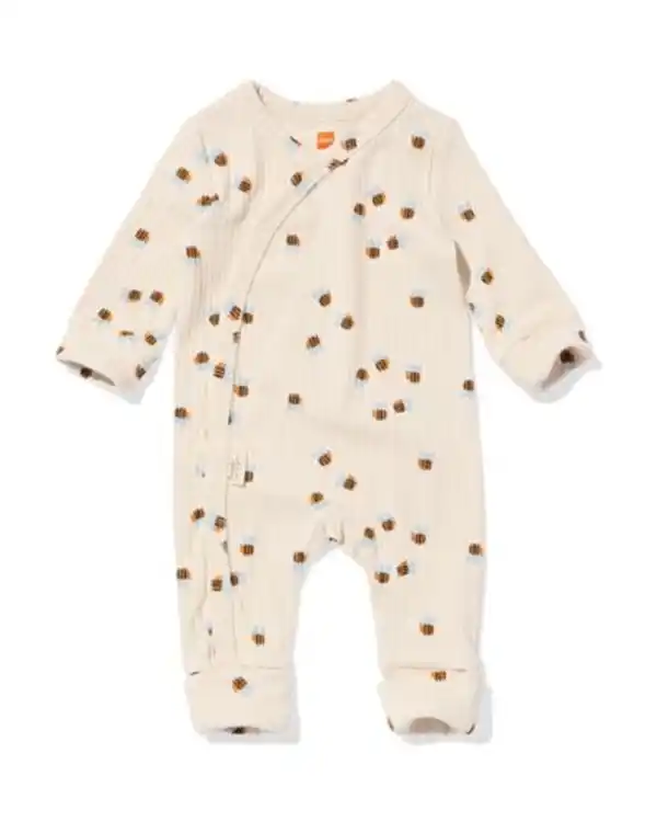 Newborn-Strampler LENZING™ ECOVERO™-(Viskose), gerippt, Bienen ecru
