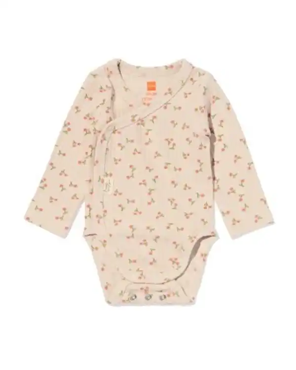 Newborn mitwachsender Wickelstrampler, gerippt, Blumen ecru