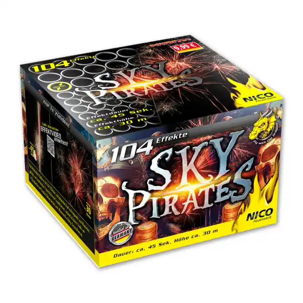 Mit 104 Effekten. Nacheinander bunt aufsteigende Leuchtkometen, gefolgt von knatternden Feuertöpfen mit Leuchtsternen, endend in einem Finale aus 14 Bombetten mit bunten Glitzersternen und silbernen Crackling-Chrysanthemen.
