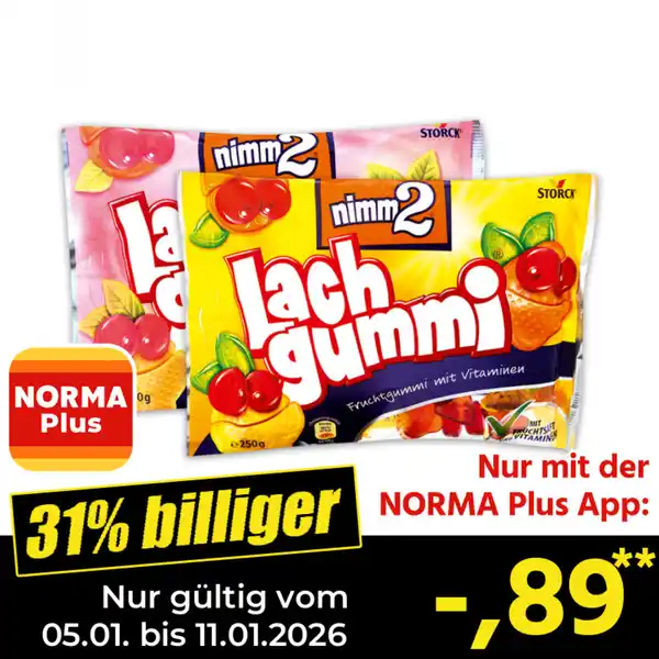 - Lachgummi und Joghurt je 250 g (1 kg = 3,96 ohne App / 1 kg = 3,56 mit App)