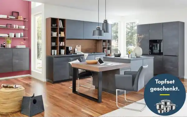 Nobilia - Einbauküche Lenzen, schwarzbeton, inkl. Miele Elektrogeräte
