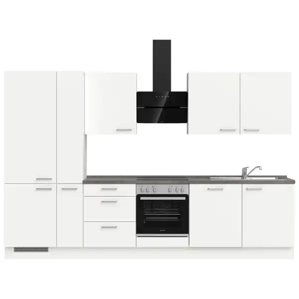 Respekta Küchenzeile KB300WSC 300 cm Weiß - Schwarz