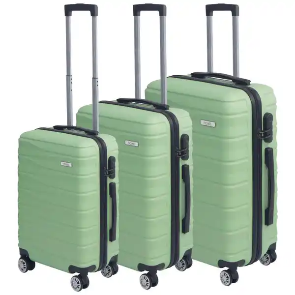 NovelREISEKOFFERSET, in der Farbe Hellgrün, aus dem Material Metall, Kunststoff, Textil Der Artikel ist ein 3-teiligs Set., die Besonderheiten des Artikels sind Zahlenschloss, höhenverstellbarer Teleskopgriff, 360°-Rollensystem, Tragehenkel, Netzfach.