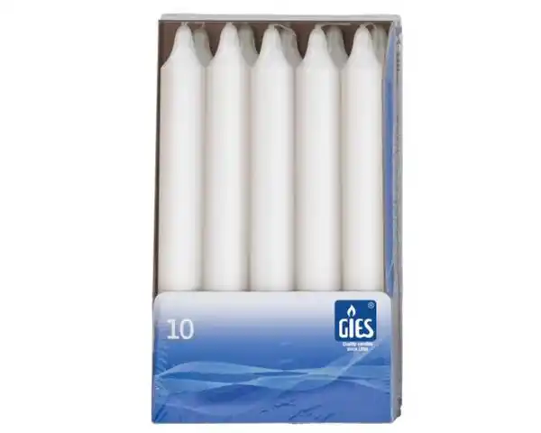 Höhe: 180 mmØ 21,5 mmMaterial: aus ParaffinStruktur: glattBrenndauer: je ca. 6 Std.Farbe: weiß