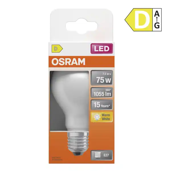 7,5 W, 1.055 lm, 2.700 K (warmweiß) > Lebensdauer ca. 15.000 h > Energieeffizienzklasse D (Spektrum A bis G) EEKDre_Hero