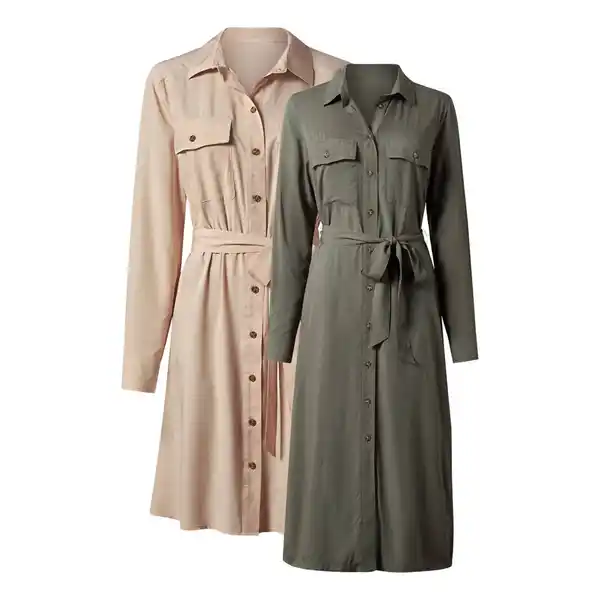Aus Viskose (LENZING™ ECOVERO™) > Besonders weich und anschmiegsam > Mit Kentkragen und durchgehender Knopfleiste > Bindeband in der Taille > In Midilänge mit Seitenschlitzen > Größen 36 - 46