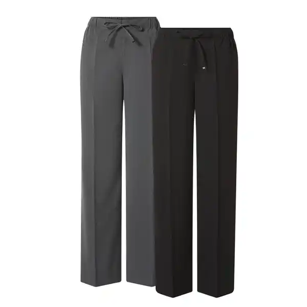 Aus recyceltem, GRS-zertifiziertem Polyester, Viskose (LENZING™ ECOVERO™) und Elastan (LYCRA®) > Besonders weich und anschmiegsam > Hohe Leibhöhe > Weites Bein mit Bügelfalte > Mit Eingrifftaschen, Gummizugbund und Bindeband > Größen S - XL