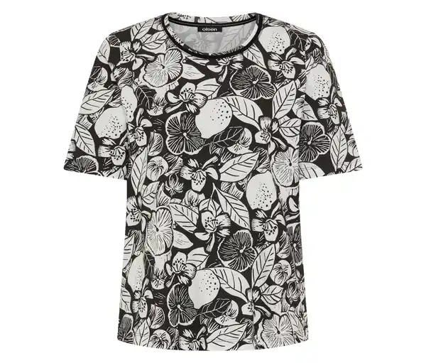 Olsen Shirt Farbe: Schwarz-weißer Alloverprint Material: 95% Baumwolle, 5% Elasthan Maße: Gesamtlänge ca 64 cm Sonstige Hinweise: Dieses T-Shirt besticht durch sein modernes Allover-Dessin, das für einen frischen und modischen Look sorgt. Der klassische Rundhalsausschnitt und die 1/3-langen Ärmel machen es zum idealen Begleiter für jeden Tag. Betont die Silhouette, ohne einzuengen Colour ID: 80000 EAN code: Gr. 36: 4063749519987 Gr. 38: 4063749519994 Gr. 40: 4063749520006 Gr. 42: 4063749520013 Gr. 44: 4063749520020 Gr. 46: 4063749520037 Gr. 48: 4063749520044 Hersteller: Olsen Mode GmbH, Friesenweg 28, 22763 Hamburg E-Mail: serviceteam@olsen.de Passform: Slim Fit Geschnitten in der geraden Olsen-Passform »Hannah«Klassischer RundhalsausschnittMit gebogenem SaumElastischer Baumwoll-Mix für hohen TragekomfortVielseitig kombinierbar