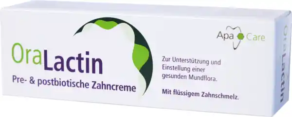 Zur täglichen Stabilisierung und Wiederherstellung einer gesunden Mundflora. OraLactin Zahncreme enthält Natriumfluorid (1450 ppm F-) und medizinisches Hydroxylapatit (flüssigen Zahnschmelz). Natürliche prebiotische Substrate fördern gezielt das Wachstum gesunder Mundbakterien. Postbiotische Zusatzstoffe wie inaktivierte Bakterien oder bioaktive Kommunikationsstoffe unterstützen die Regulation und Regeneration einer ausgewogenen gesunden Mundflora.