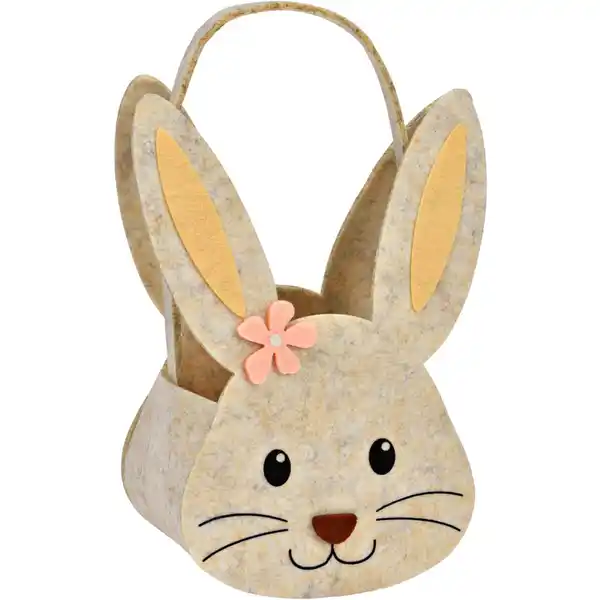 Osterkorb "Hasenkopf" Filz beige mit Henkel 13x9x22 cm