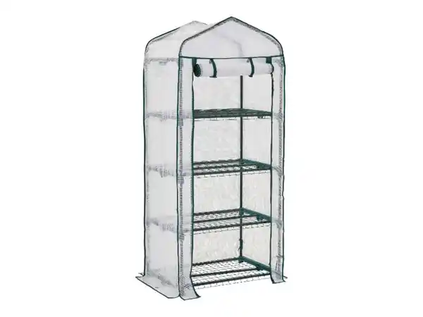 Hergestellt mit recyceltem Material Ideal zum komfortablen Kultivieren von Pflanzen Mit 4 Regalen – je 8 kg Tragkraft Stabile Konstruktion aus pulverbeschichtetem Metall Reißfeste; strapazierfähige Gitterfolie mit 115 g/m² Aufrollbare Front mit Reißverschlüssen und 2 Befestigungsclips Praktische Steckverbindungen – einfacher Aufbau ohne Schrauben Witterungs- und UV-beständig Produktmerkmale tabletd Einsatzbereich: Kultivieren von Pflanzen Türart: aufrollbare Front mit Reißverschlüssen und 2 Befestigungsclips Abschließbar: nein Material: Rahmen: Stahl; Gitterfolie, Verbindungen: Kunststoff Maße: ca. B 69 x H 160 x T 49 cm Gewicht: ca. 4,2 kg Lieferumfang: 1x Gewächshaus mit 4 Regalen Gerüst + Gitterfolie, 7 x Erdnagel als Befestigungsmaterial zur Befestigung am Boden, 8 x Fixierungsclips GRS – Global Recycled Standard Awning surface contains 50 % GRS certified recycled polyethylene + Joint contains 50 % GRS certified recycled polypropylene. Zertifizierungsnummer: CU 851646 Der Kauf von Produkten, die nach dem Global Recycled Standard GRS zertifiziert sind, zeigt, dass in der Lieferkette die Nachfrage nach recycelten Inhalten und besten Verarbeitungsmethoden besteht.
