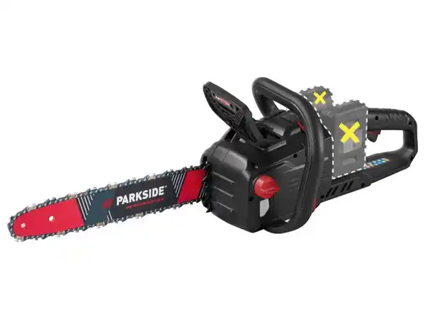 Bürstenloser Motor Brushless Motor – besonders hohe Lebensdauer durch geringeren Verschleiß Vielseitig einsetzbare Akku-Kettensäge mit hoher Schnittleistung zum Fällen; Entasten und Schneiden von Holz Bei Einsatz der Parkside Smart-Akkus X 20 V Paps: Optimale Performance durch höhere Laufzeit und Entladeströme für mehr Leistung Mit Eingabe- und Kontrollfeld: Kettengeschwindigkeit und Ladezustand des Akkus Leistungsstarkes Gerät mit zwei einstellbaren Kettengeschwindigkeiten 45,5 cm langes Schwert mit einer Schnittlänge von 38 cm Robuste 16Halbmeißelzahn-Sägekette mit 56 Treibgliedern Werkzeuglose Ketten-Schnellspannung Automatisches Kettenölsystem Mit Ölstandsanzeige und unverlierbarem Öltankdeckel Sanfter; ruckfreier Kettenanlauf durch „Soft-Start“ Ergonomischer Griff mit rutschhemmender Softgrip-Ausstattung Fällgriff und Fälllinie für komfortables, horizontales Sägen 2-Hand-Schutzschalter mit Ketten-Sofortstopp Stabiler Krallenanschlag aus Metall Langlebiges, robustes Metallgetriebe Ladezustandsanzeige Akku am Gerät Im Vergleich zur Parkside Akku- Kettensäge Paks 20-Li E5: Bis zu 300 % höhere Kettengeschwindigkeit I Bis zu 65 % mehr Schnittlänge Bis zu 10 x längere Motorlebensdauer Gerät kompatibel mit allen Akkus der Serie Parkside X 20 V Team 1 Akku-Serie – über 100 Geräte Empfohlene Smart-Akkus: 2 x Paps 204 A1 20 V / 4 Ah Zum Betrieb sind 2 Akkus zwingend erftd Betriebsart: Akku Akkuspannung: 40 V 2x 20 V Kettengeschwindigkeit: 1. Stufe: 15 m/s, 2. Stufe: 30 m/s Kettenschnellbremse: Nutbreite: 1,1 mm Treibgliederanzahl: 56 Schwertlänge: ca. 45,5 cm Schnittlänge: ca. 38 cm Öltank-Volumen: 180 ml Zubehör: 1x Kettenschutz, 1x 180 ml Bio-Kettenöl Aufbewahrungskoffer: nein Material: Kunststoff, Stahl Maße: ca. L 82 x B 23,5 x H 25 cm Gewicht: ca. 3,8 kg I bei Verwendung der Smart-Akkus 20 V / 8 Ah Alle kompatiblen Geräte unserer 20-Volt-Serie findest du hier: