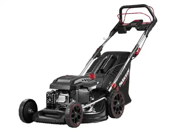Rasenmäher mit komfortablem Radantrieb und zuverlässigem Elektro-Start Besonders leistungsstarker und laufruhiger 4-Takt-Motor mit hohem Drehmoment Zuschaltbarer Heckantrieb für optimalen Komfort auch bei unebenem Gelände 3-fach höhenverstellbarer; ergonomisch geformter Führungsholm Integrierte Konsole mit Elektro-Startknopf, Starterakku-Einschubfach sowie praktischer Werkzeug- und Handyhalterung Komfortabler Elektrostart – leistungsstarker 20-V-Lithium-Ionen-Akku 2 Ah der Serie “X 20 V Team“ für ca. 150 Elektrostartvorgänge je Ladung 3-stufige LED-Akkuzustandsanzeige am Akku / Ladegerät 2,4 Ah mit automatischer Ladeabschaltung und LED-Ladeindikator Alternativer Start auch per Seilzug möglich Hochwertiges Messer aus Spezialstahl mit Schnellstopp-Funktion Extra große Schnittbreite zum schnellen Arbeitsfortschritt Schlanke Konstruktion zum randnahen Mähen 8-stufige; zentral einstellbare Schnitthöhe 3 Mähfunktionen: 60-Liter-Grasfangeinrichtung, Seitenauswurf oder Mulcheinsatz Einfache Reinigung des Mähwerks durch Gartenschlauchanschluss am Mähdeck Robustes; pulverbeschichtetes Stahlblechgehäuse Räder mit rasenschonendem Breitreifenprofil Transparenter Benzintank zur einfachen Füllstandskontrolle Klappfunktion mit Schnellverschlüssen zur besonders platzsparenden Aufbewahrung Emisionsstufe: Euro 5 Enthaltenes Zubehör: 1 Mulchkit 1 Seitenauswurf 1 Akku 20 V 2 Ah 1 Akku- Ladegerät 2,4 A 1 Werkzeughalterung 1 Handyhalterung 1 Zündkerzenschlüssel / Kompatibel mit allen Akkus der Serie „X 20 V Team“ Im Vergleich zum PARKSIDE-Benzinrasenmäher Pbrm 43 A1: mehr Hubraum 23 % größere Schnittbreite 33 % mehr Fangboxvolumen Produktmerkmale tabletd Betriebsart: Benzin Leistung: 4,2 kW bei 3600 1/min Akkuspannung: 20 V Schnittbreite: 53 cm Max. Drehzahl: max. 3600 min Fangsackvolumen: 60 l Schnitthöhen: ca. 2,5 - 7,5 cm Schnitthöhenverstellung: 8-stufig Arbeitsgeschwindigkeit: 3;4 km/h Motortyp: OHV-4-Takt Tankvolumen: ca. 1,2 l Kraftstoff: Benzin Motoröl: ca. 0,5 l Material: Kunststoff; Stahl Maße: ca. L 153 x B 58 x H 95-128 cm Gewicht: gesamt: ca. 33 kg