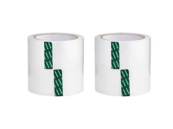 Universell einsetzbar – zum Verpacken und Verschließen von Kartons, etc. Reißfest und klebstark 4 Stück Produktmerkmale ;} Art: Packband Farbe: weiß Stärke: 0;23 N/mm auf Edelstahl Beidseitig klebend: nein Reißfestigkeit: 240 % Material: Kunststoff Maße: je ca. L 66 x B 0,05 m