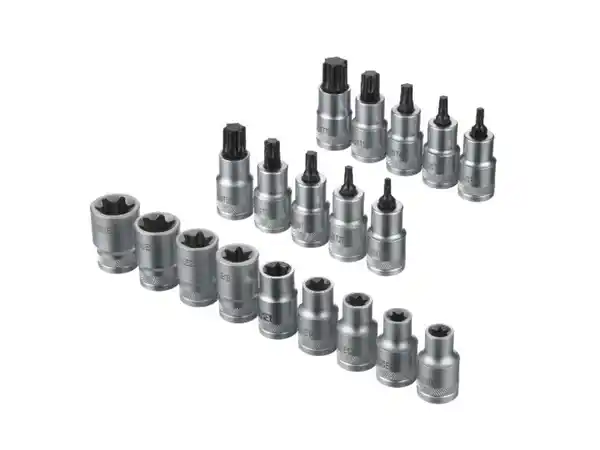 Teleskopratsche Mit Schnelllöser und Kugelsicherung 1/2"-Ratsche mit Schnellauswurf – 5 Positionen verstellbar Vierkantantrieb Rechts/links umschaltbar (72 Zähne) Ausziehbare Länge: ca. 46–60 cm Steckschlüssel-Set In praktischer Aufbewahrungsbox 1/2"-Vierkantantrieb mit Kugelarretierung Größen: E10/E11/E12/E14/E16/E18/E20/E22/E24/T20/T25/T27/T30/T40/T45/T50/T55/T60/T70 19-teilig Produktmerkmale ;} Material: Teleskopratsche: Stahl, Kunststoff, Steckschlüssel-Set: Stahl Maße: Teleskopratsche: ca. L 46-60 x B 4 x H 3,9 cm, Steckschlüssel-Set: ca. 1,25 x L 5,5 cm Gewicht: Teleskopratsche: ca. 1,1 kg, Steckschlüssel-Set: gesamt ca. 1,4 kg