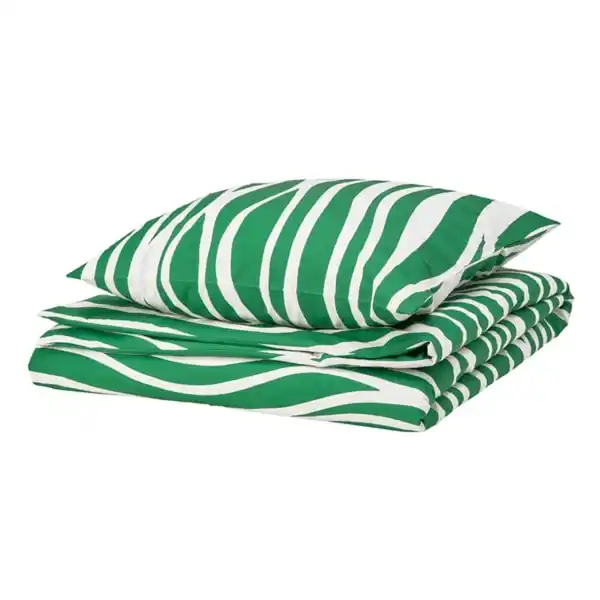 PORTLAKMÅLLA Bettwäsche-Set, 2-teilig, grün/weiß, 155x220/80x80 cm